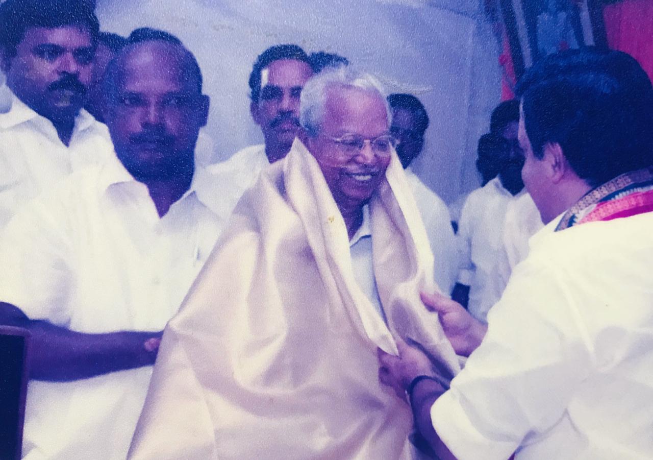 The Honourable President of India K. R Naryanan honouring Marangattu Padmanabhan during the fiftieth independence day celebration , at Rashtrapati Bhavan.